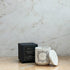 Unser verschließbares Kerzengefäß besteht aus einem lösungsmittelfreien Zementverbund und entsteht in vielen Schritten: es wird gegossen, geprägt, geschliffen, verziert und versiegelt. Dann erst bereiten wir das Wachs und die feinen Düfte vor, setzen den Docht und gießen anschließend das beduftete Wachs ein. Ist die Kerze gegossen, ruht und reift sie.