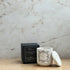 Unser verschließbares Kerzengefäß besteht aus einem lösungsmittelfreien Zementverbund und entsteht in vielen Schritten: es wird gegossen, geprägt, geschliffen, verziert und versiegelt. Dann erst bereiten wir das Wachs und die feinen Düfte vor, setzen den Docht und gießen anschließend das beduftete Wachs ein. Ist die Kerze gegossen, ruht und reift sie.